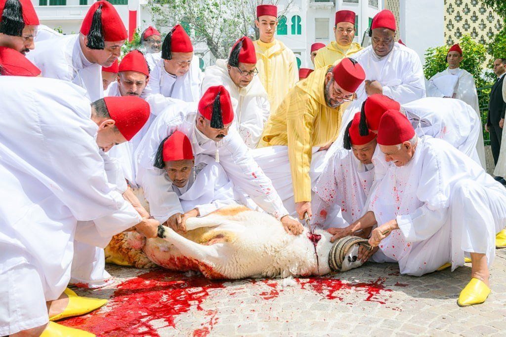Par la suite, SM le Roi, Amir Al-Mouminine, a procédé au rituel du sacrifice, suivant en cela la tradition du Prophète Sidna Mohammed, que la paix et la bénédiction soient sur Lui. Sur ce, l’Imam de la mosquée a procédé à l’immolation du deuxième mouton.