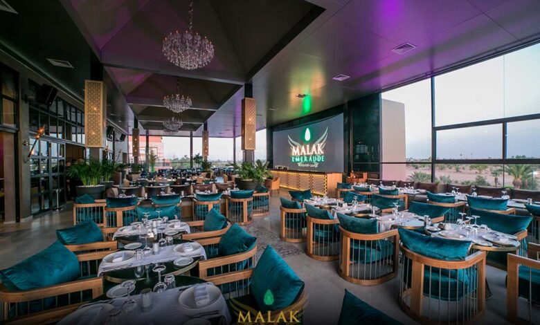 Le restaurant Malak Émeraude offre une vue panoramique sur les montagnes de l’Atlas. L’ambiance y est magique, surtout le soir, avec une musique douce et des tables parfaitement mises en valeur par la lueur des lanternes. C’est l’endroit idéal pour un dîner romantique, un repas festif ou simplement une pause gastronomique dans un cadre intime.
